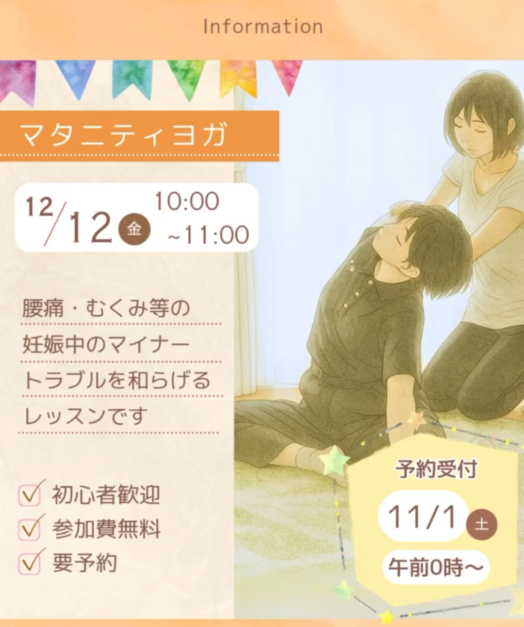 ふかええほん館にて マタニティヨガを開催いたします。詳細、ご予約方法は「ふかええほん館」ホームページ又はInstagramにて。お気軽にお問い合わせ下さい😊